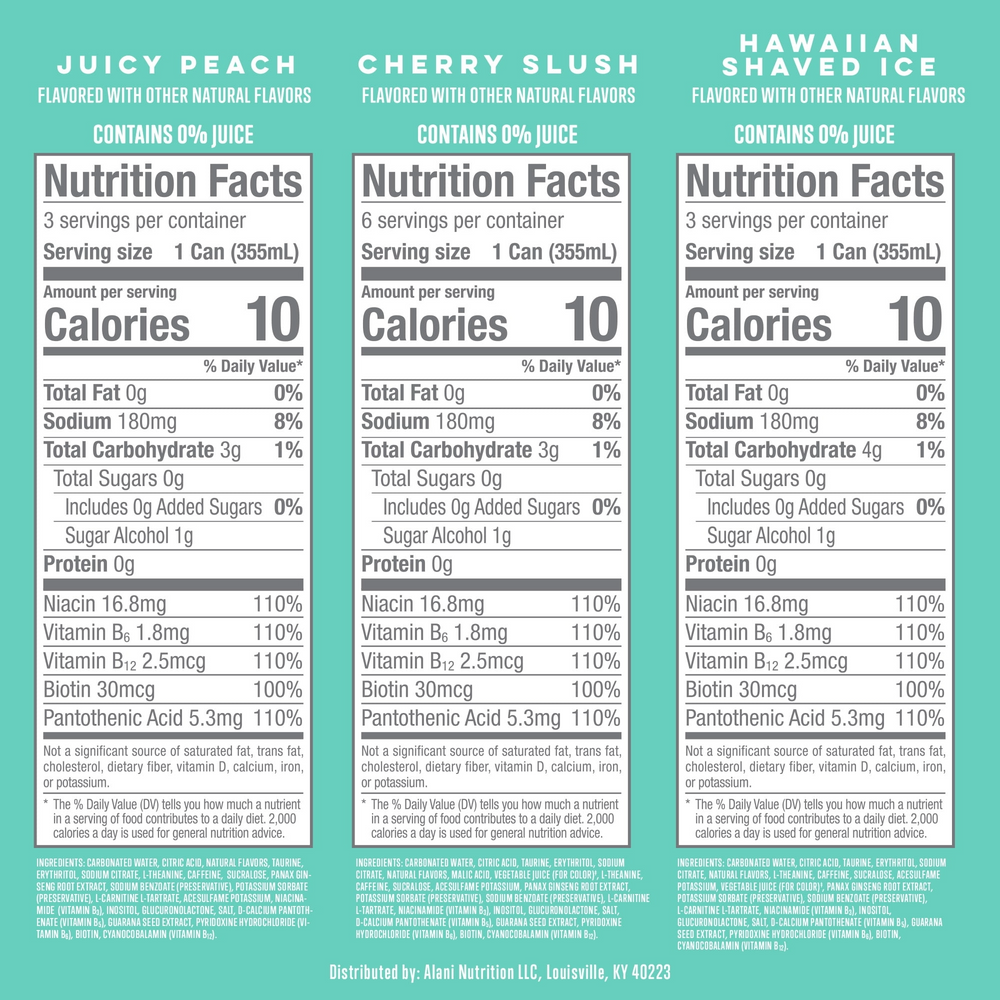 Alani Nu Sugar Free Energy Drink, Variety Pack, Cherry Slush, Juicy Peach, Hawaiian Shaved Ice, 12 fl oz, 12 Pack, Cans, 200mg Caffeine