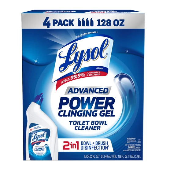 Product Details:Lysol Advanced Toilet Bowl Cleaner cleans and disinfects toilets. The thick formula sticks to the bowl for better cleaning. Lysol liquid toilet bowl cleaner kills 99.9% of viruses & bacteria with complete clean power. The angled bottle targets hard-to-reach areas, including under the rim, to leave your entire toilet bowl sparkling clean, deodorized and disinfected.