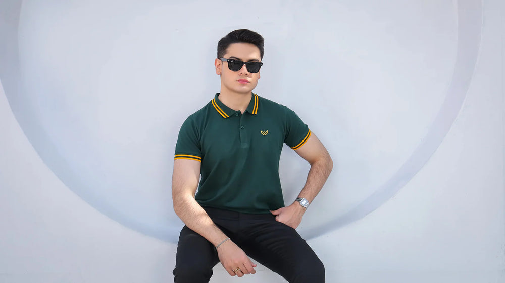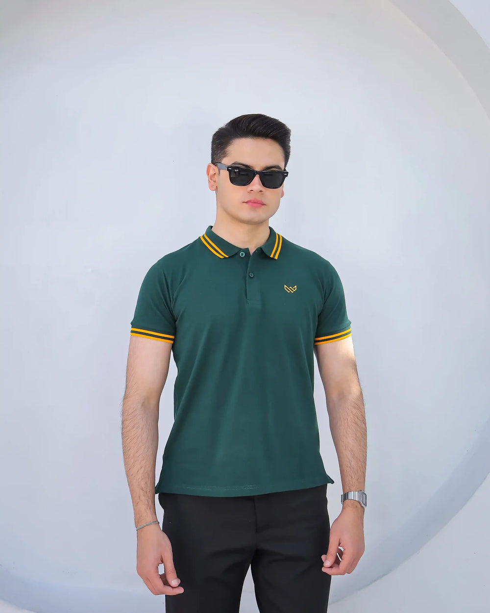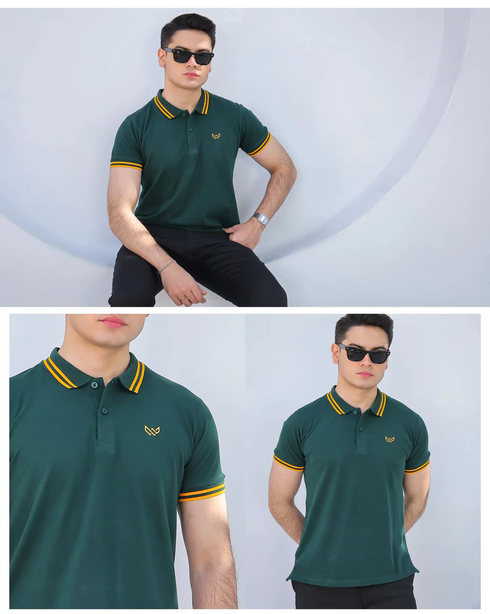xExperience unmatched luxury with the Gold Green - Tipping Cotton Polo, a true masterpiece in premium craftsmanship. Made from a high-end 95% cotton and 5% Lycra blend, this polo offers a buttery-soft touch, remarkable breathability, and just the right amount of stretch for all-day ease.