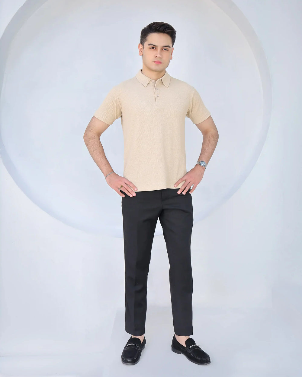 A must-have for those who value premium fashion with a timeless touch. Elevate your wardrobe with the Waffle Knit - Skin Polo today!